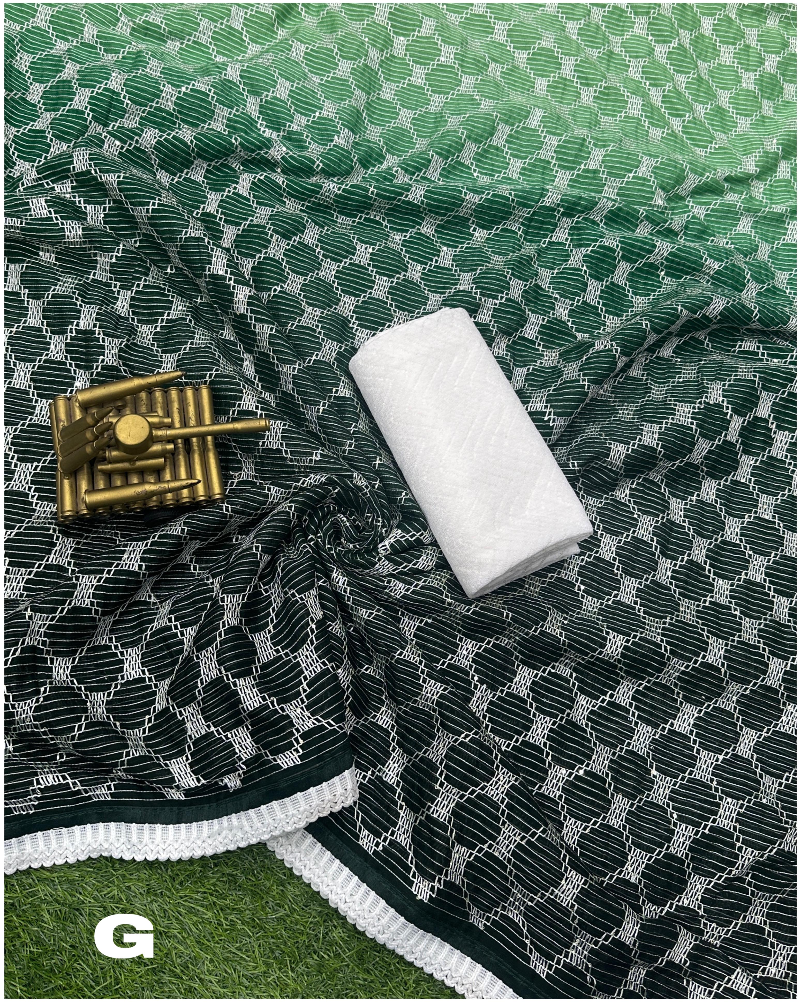 Unleash your inner royalty with our pedding colour crossis work saree , available in 9 different shades!!*