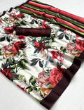 Beautiful Designer Digital Flower Print Satin Silk Saree
