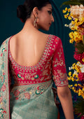 Beautiful Designer Blue Red Banarasi Kanjivaram Wedding Saree