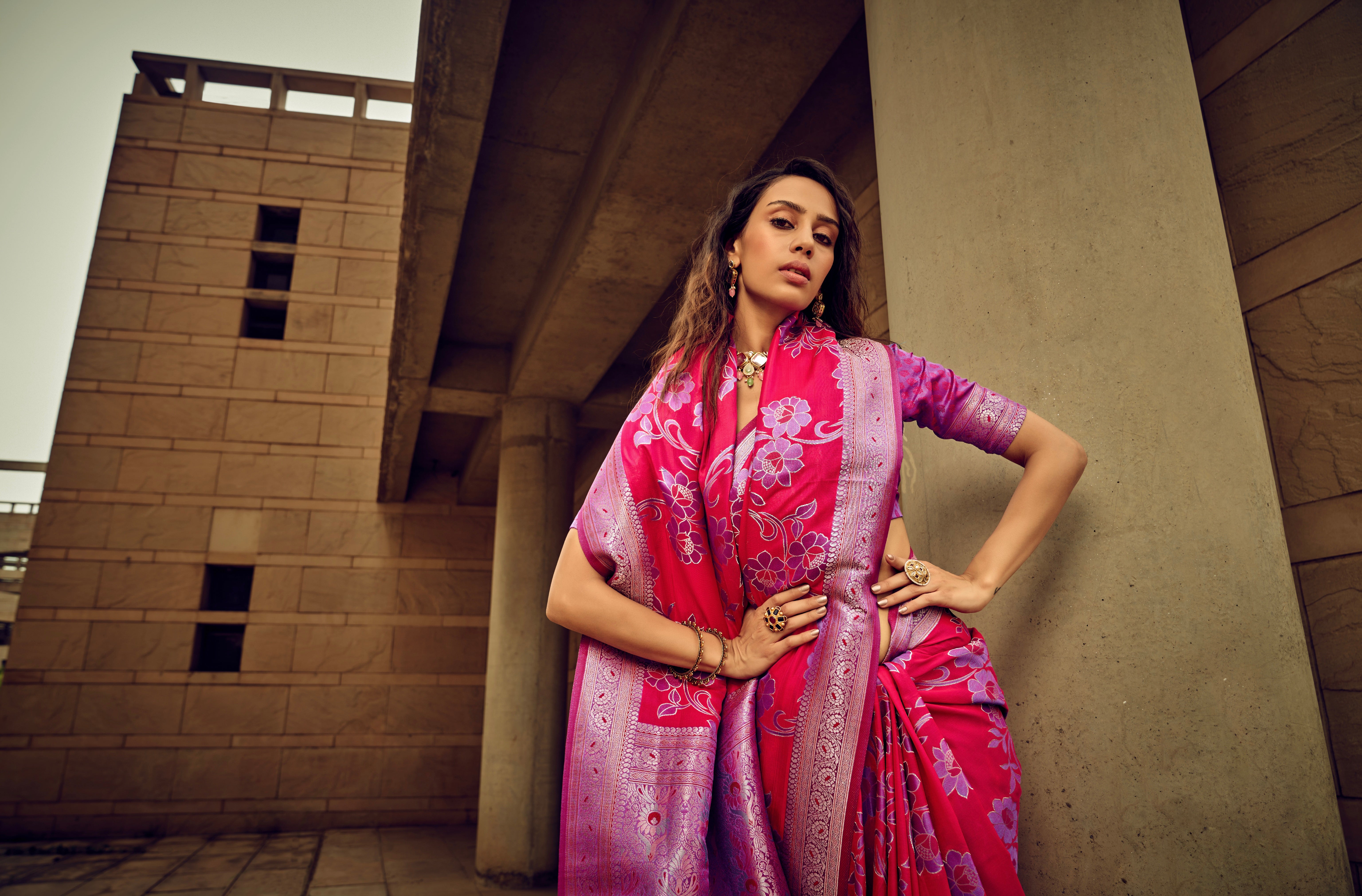 Beautiful Designer Festival Wear Satin Silk Brasso Saree