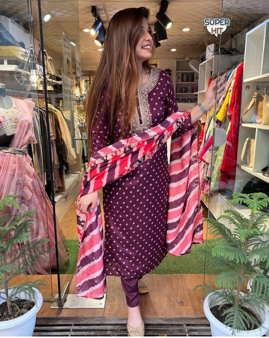 Beautiful Designer Heavy Embroidery Work Kurti with Pant & Dupatta