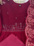 Featuring beautiful Georgette Suit Set which is beautifully decorated with intricate hand embroidery, Zari weaving and prints. It is paired with matching pants and Full work lace dupatta