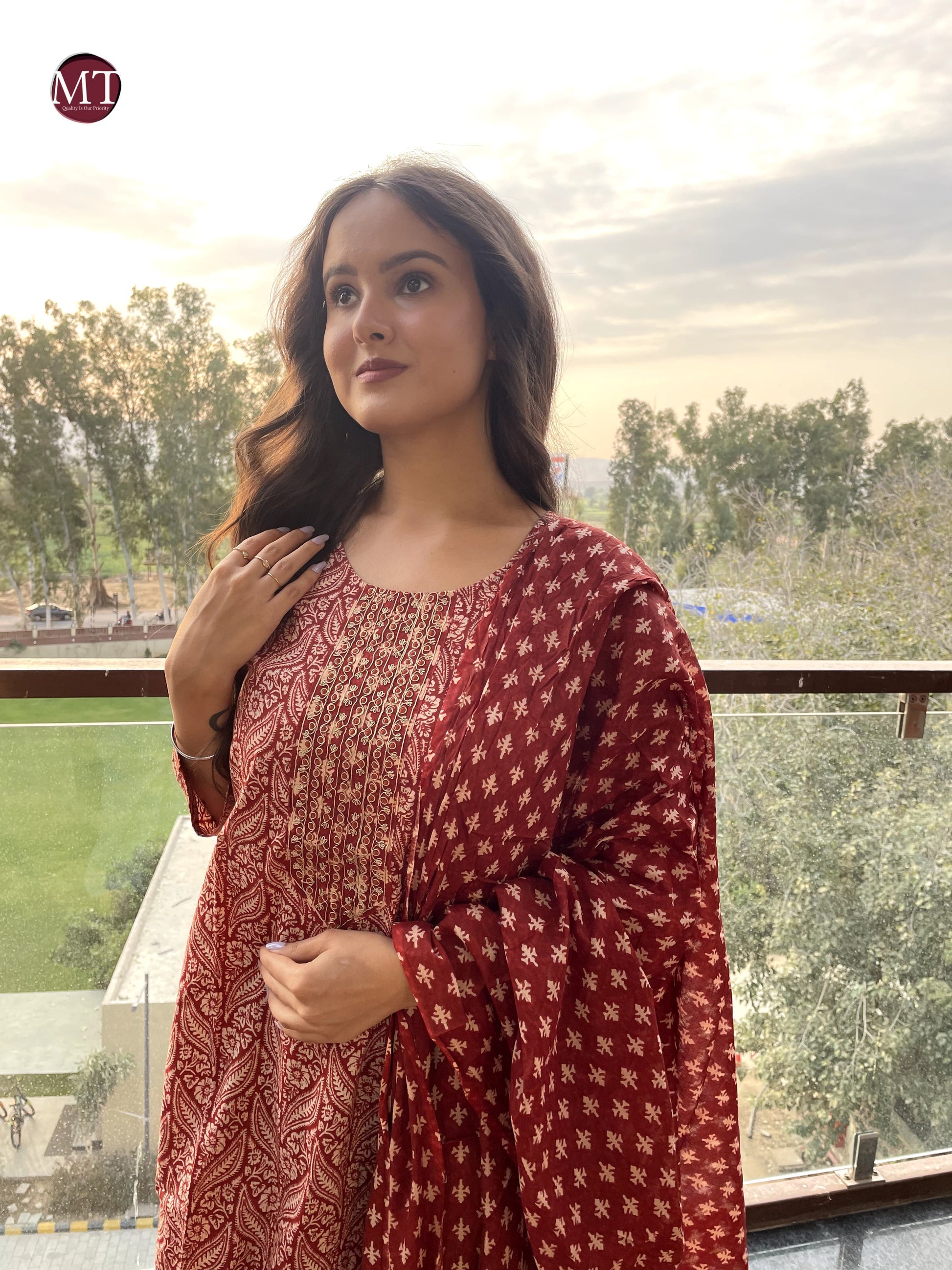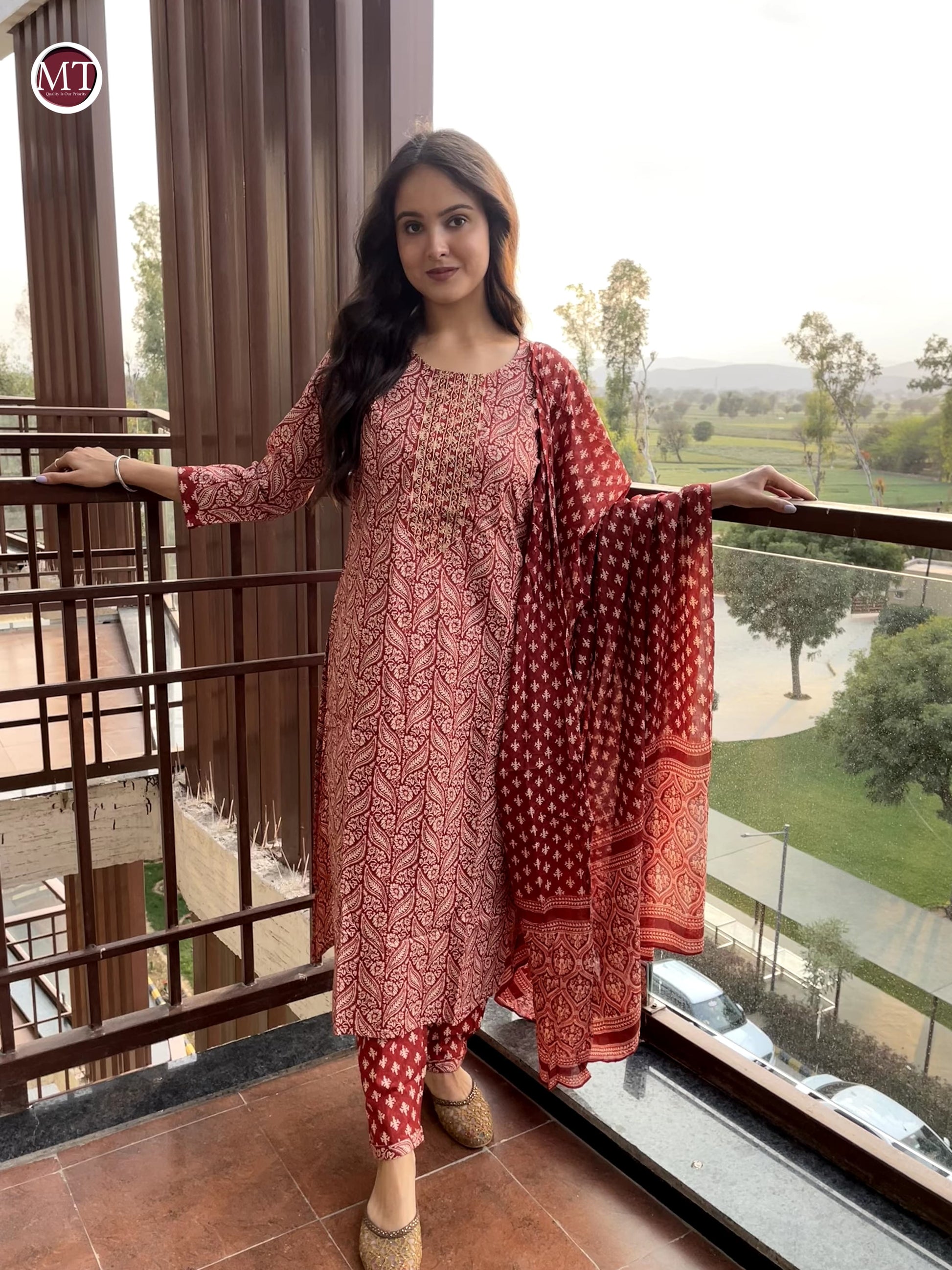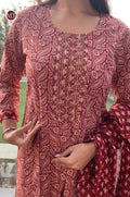 Get festive ready with our new Kurta Pant Duppata 3 Piece Sets with beautiful neck Embroidery work Fabric Heavy Cotton