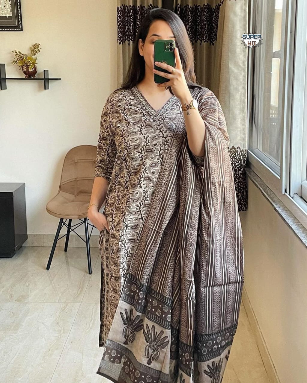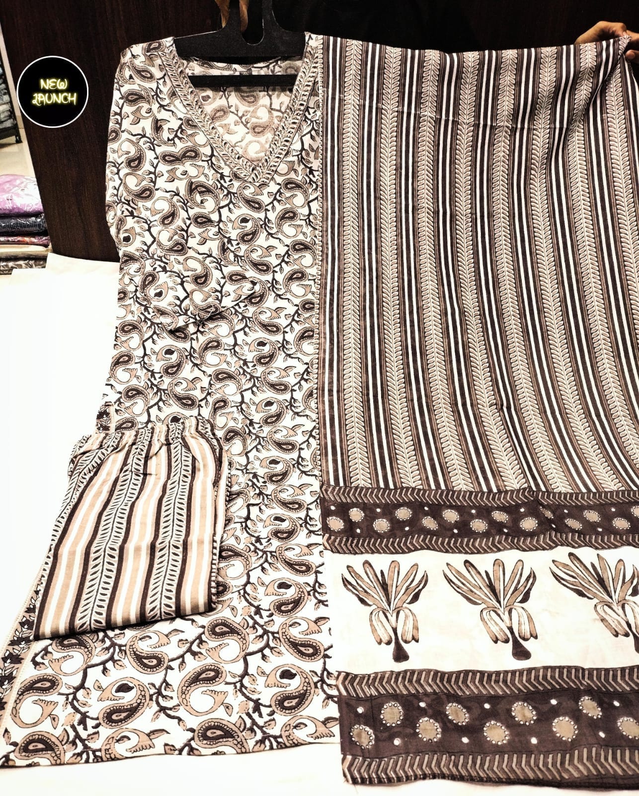 Beautiful Designer Heavy Cotton Kurti Pent with dupatta