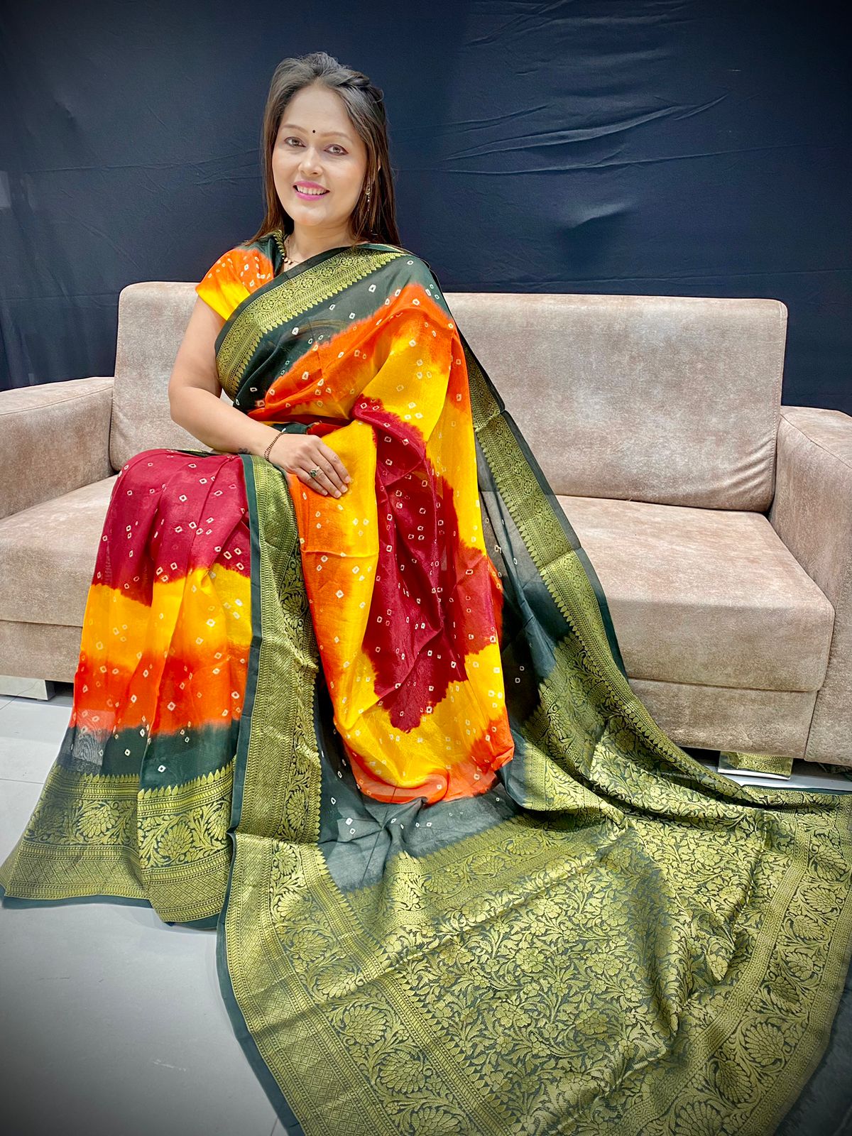 New Kanjivaram Bandhani Saree