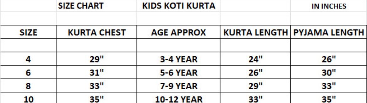 Size chart given