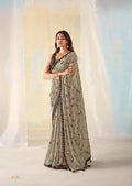 Fabric- Georgette Fancy Weaving Pattern With Fancy Lace Border & Latkan With Beautiful Printed Banglori Blouse