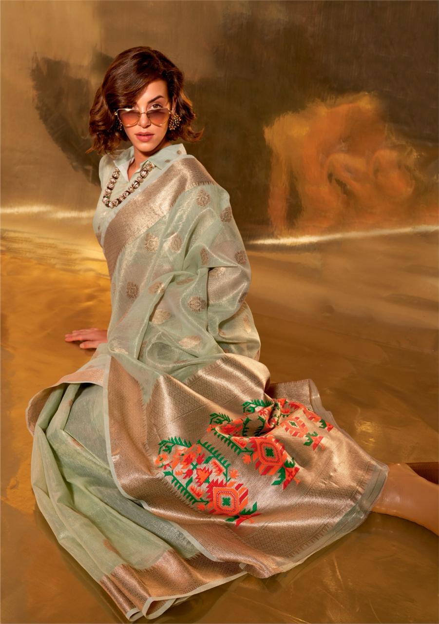 Beautiful Designer Korra Tissue Paithani Zari Silk Saree
