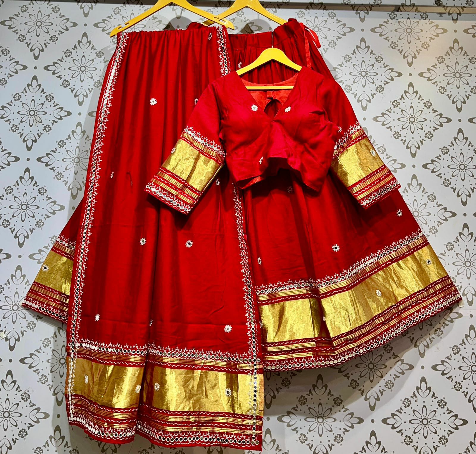 Lehnga Fabric Modal Gajji Silk _ With Thread and Mirror Work, Full Stich ,Size - upto 44, length - 44