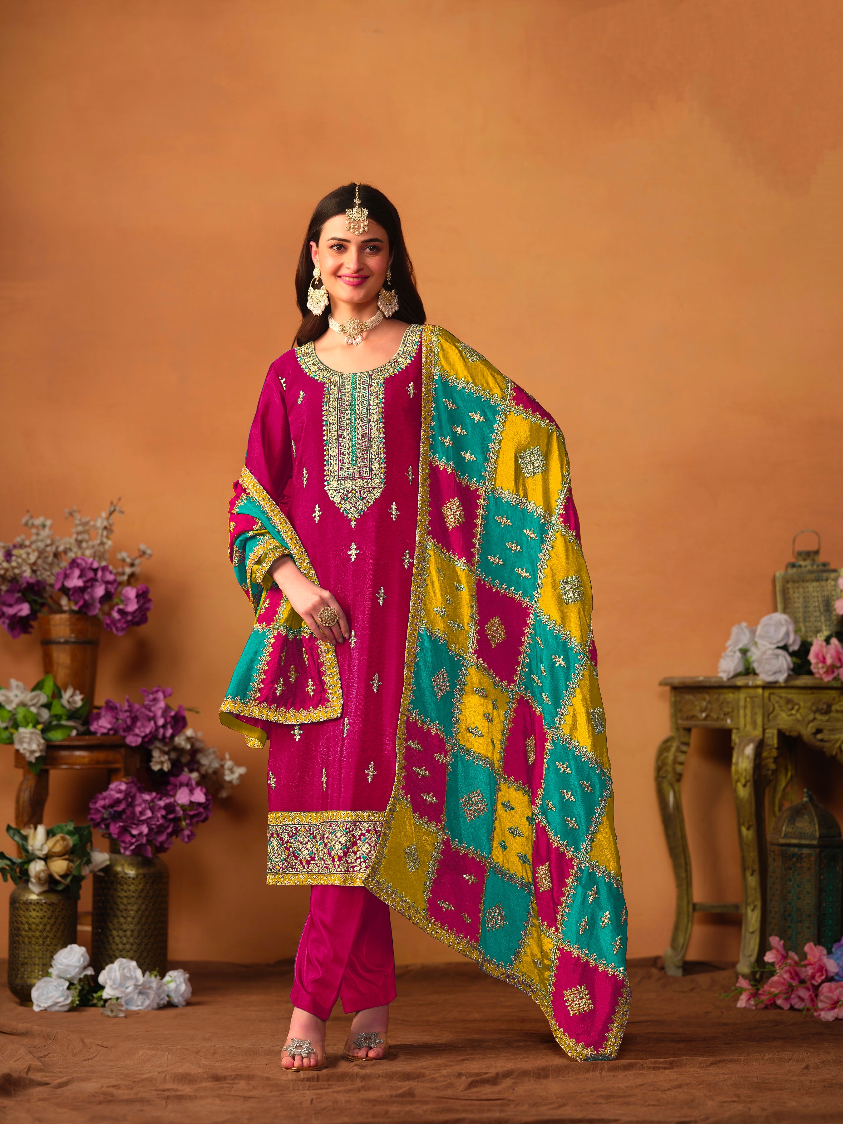 Beautiful Designer Occasion Wear Chinnon Silk Salwar Suit
