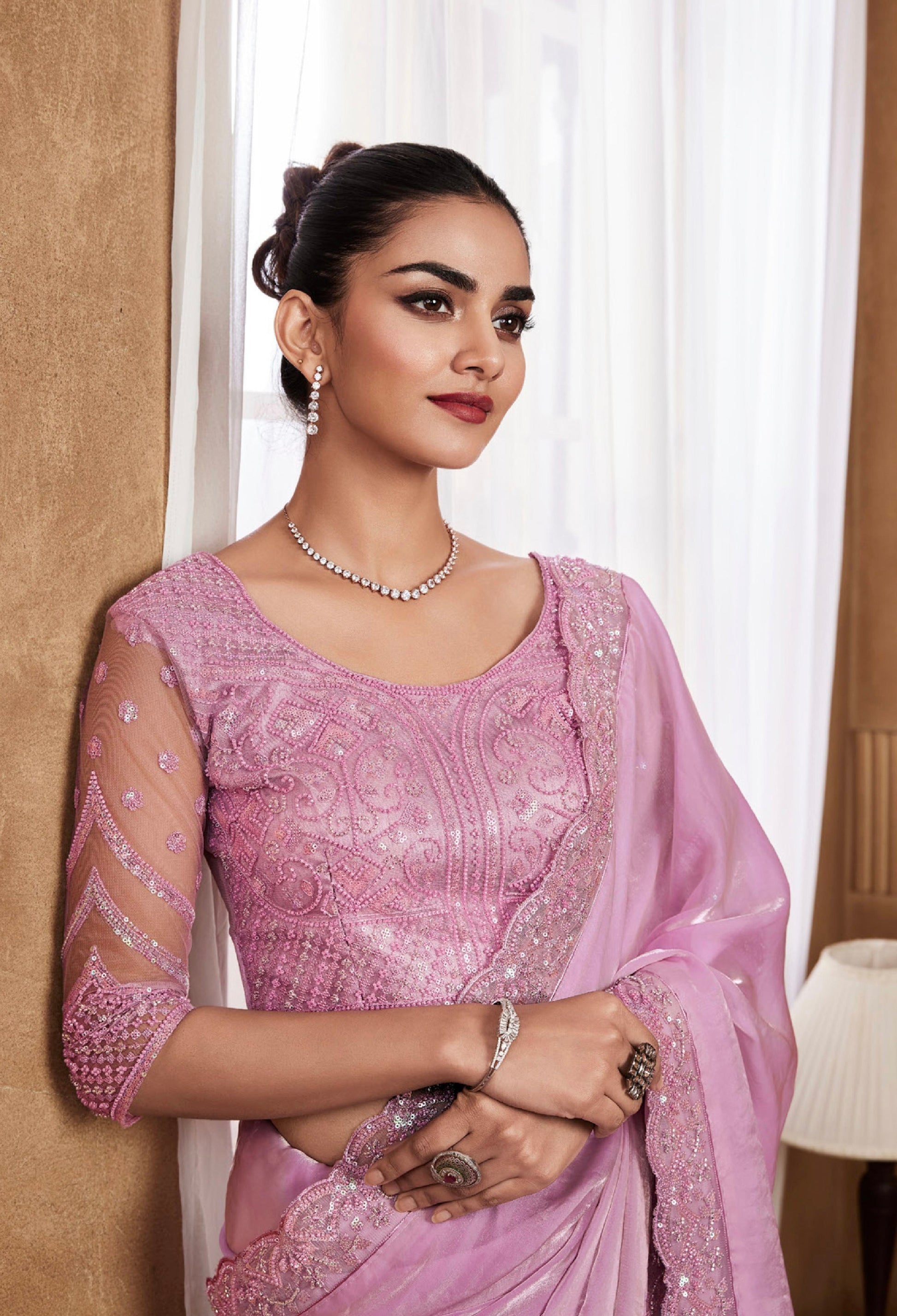 Beautiful Designer Occasion Wear Fancy Sartin Silk Saree