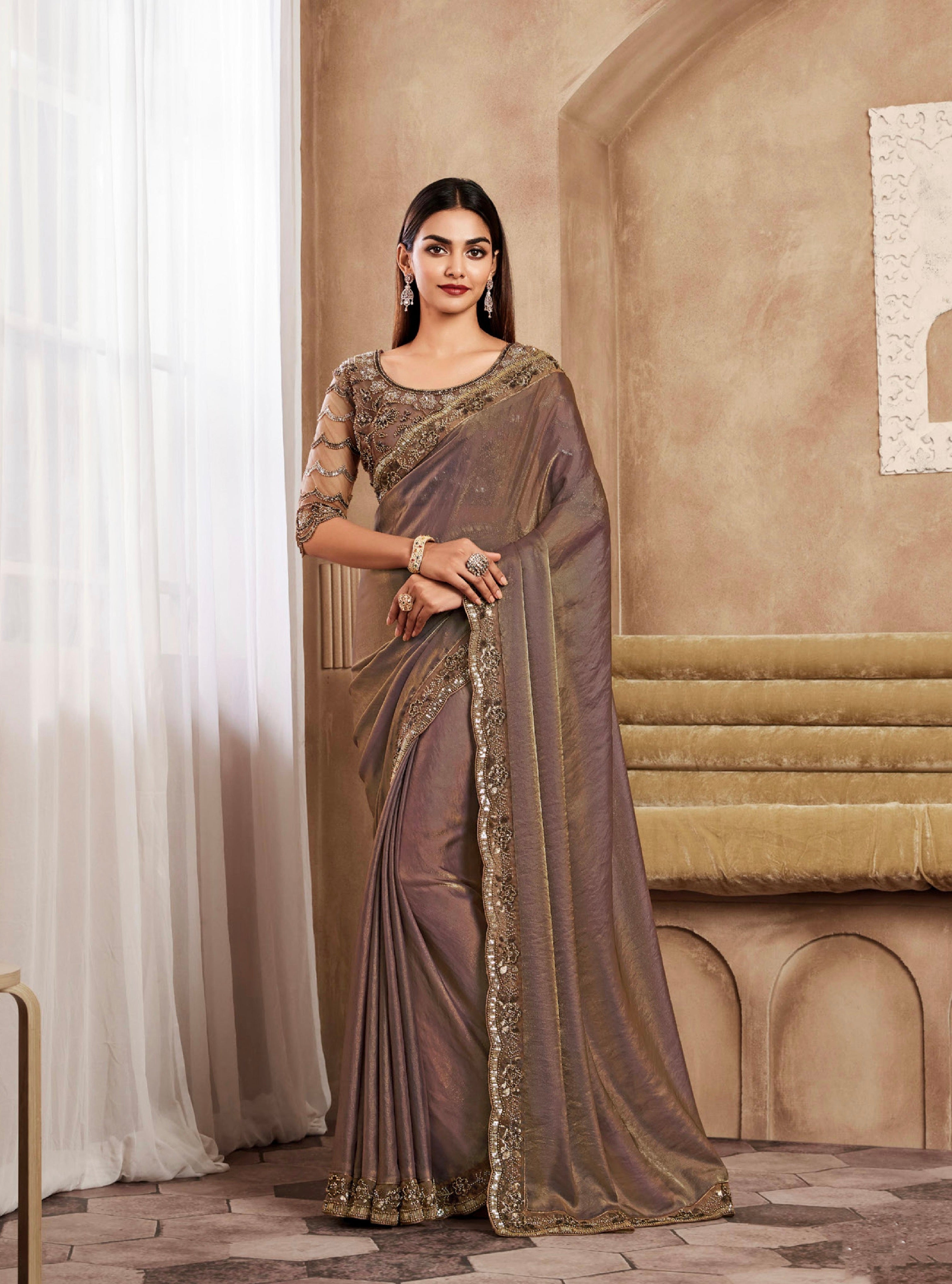 • Beautiful Designer Occasion Wear Fancy Sartin Silk Saree