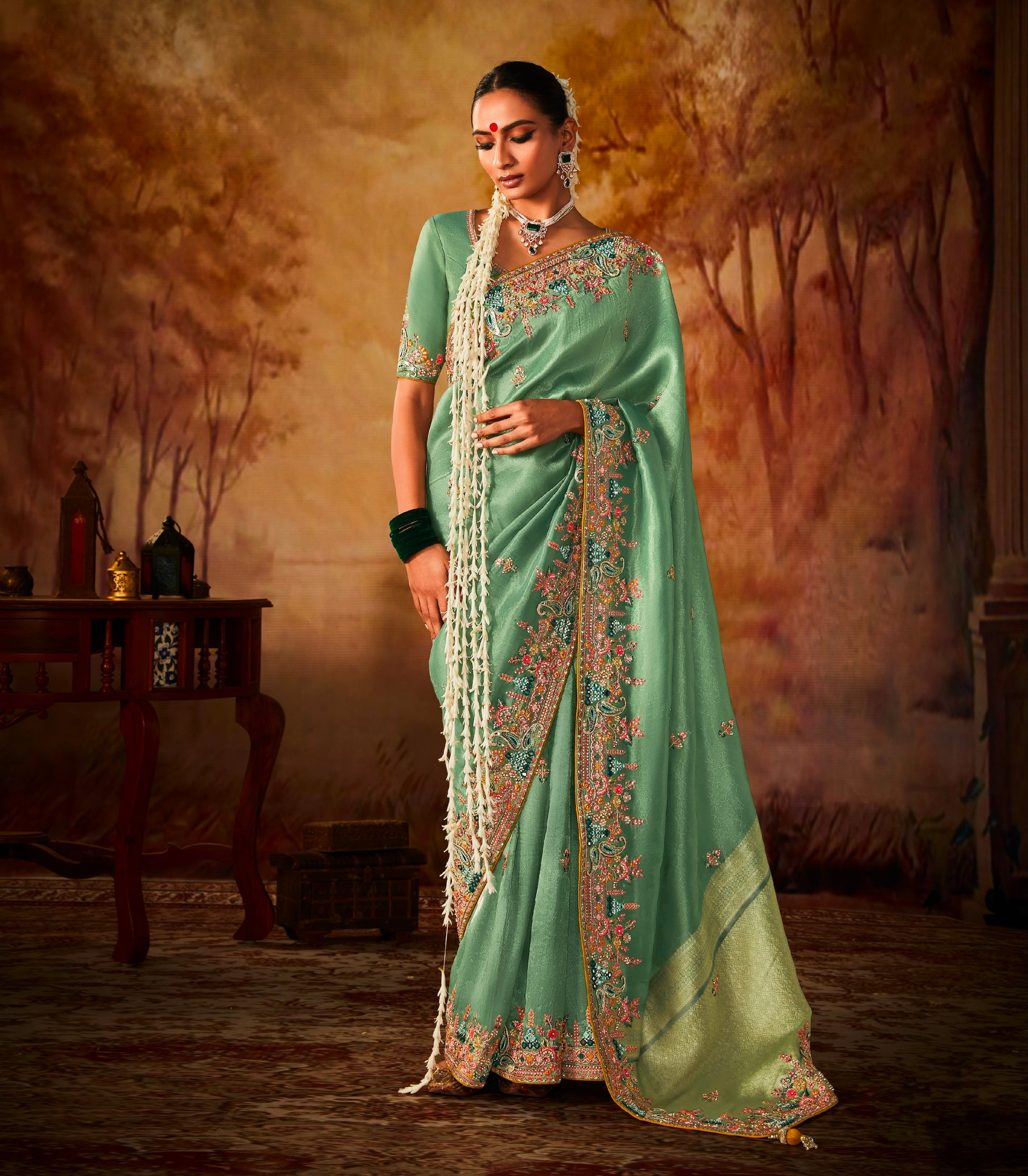 Work : This Saree Is Embellished With Sequin,Stone, Embroidery, ,Khatli, Zari Weaving Work Zardosi,,Thread & Pearl Work And Attached With Heavy Latkan On Pallu