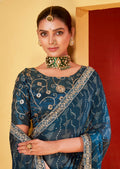 Fabric β Moss ciffion fabric with foil print and embroidery work boder with fancy embroidery work blouse
