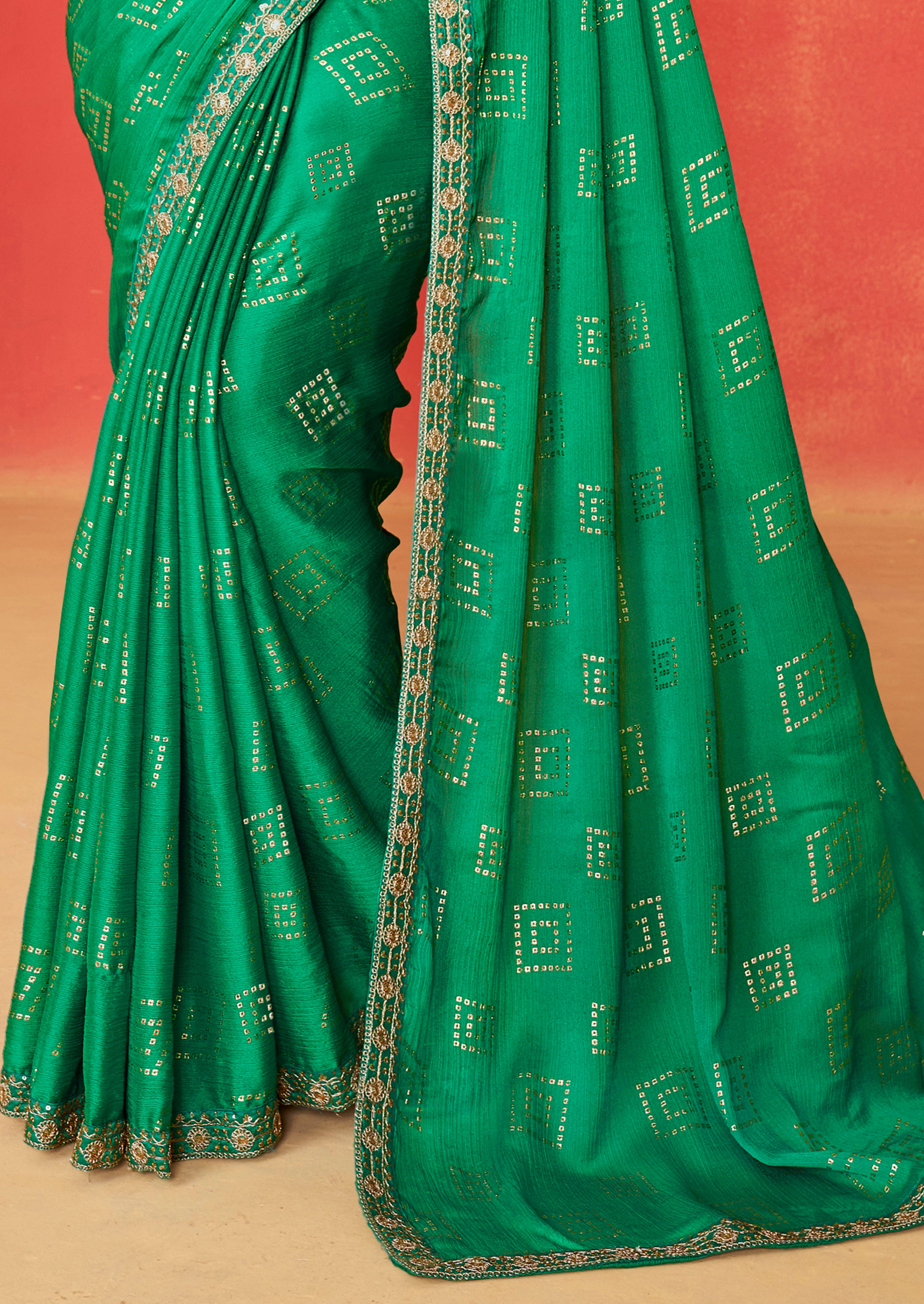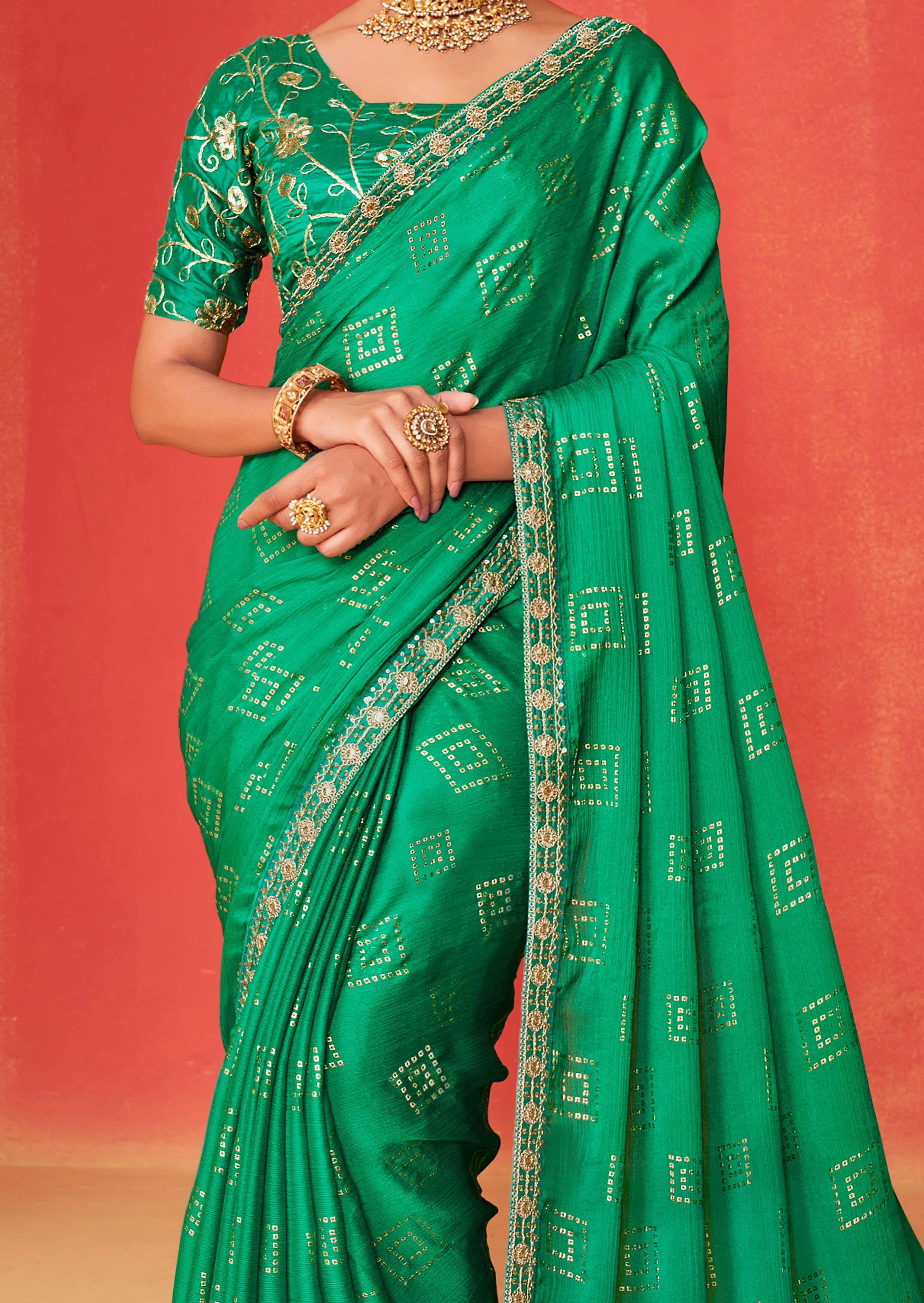 Fabric – Moss ciffion fabric with foil print and embroidery work boder with fancy embroidery work blouse