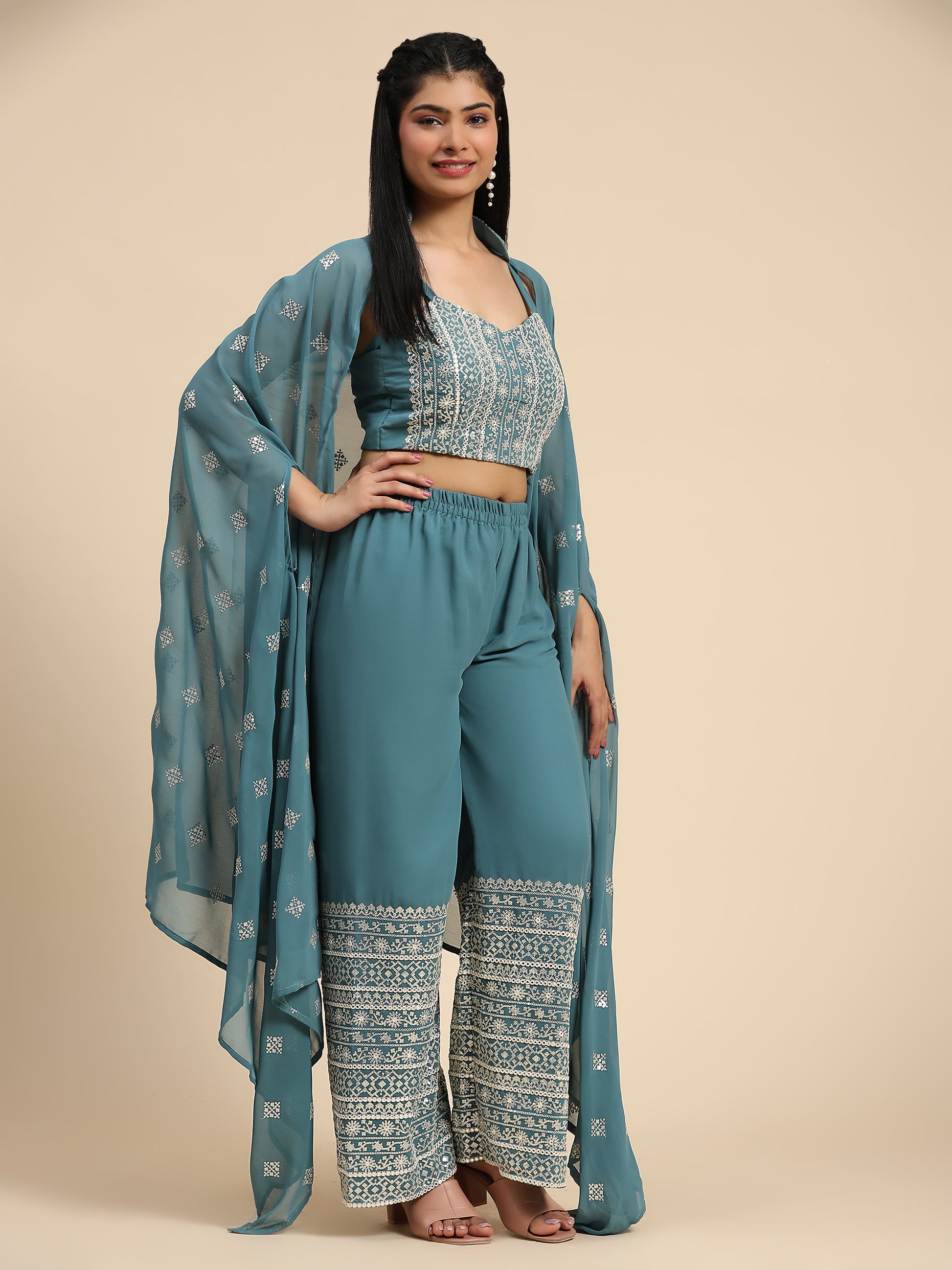 Plazzo Embroidery Work With Pure Georgette Fabric