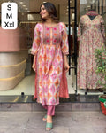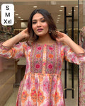 Premium Masleen Cotton Print Top WithΒ Beautifully Embroidery Stich Work On Yoke & Designer Sleeve Work And Side WorkΒ With Plazzo