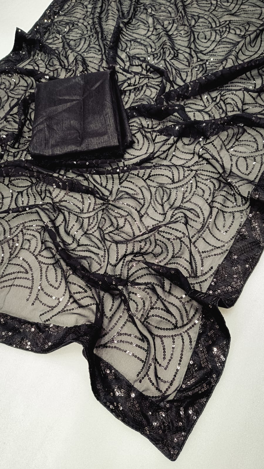 Beautiful Designer Party Wear Georgette Sequence Saree