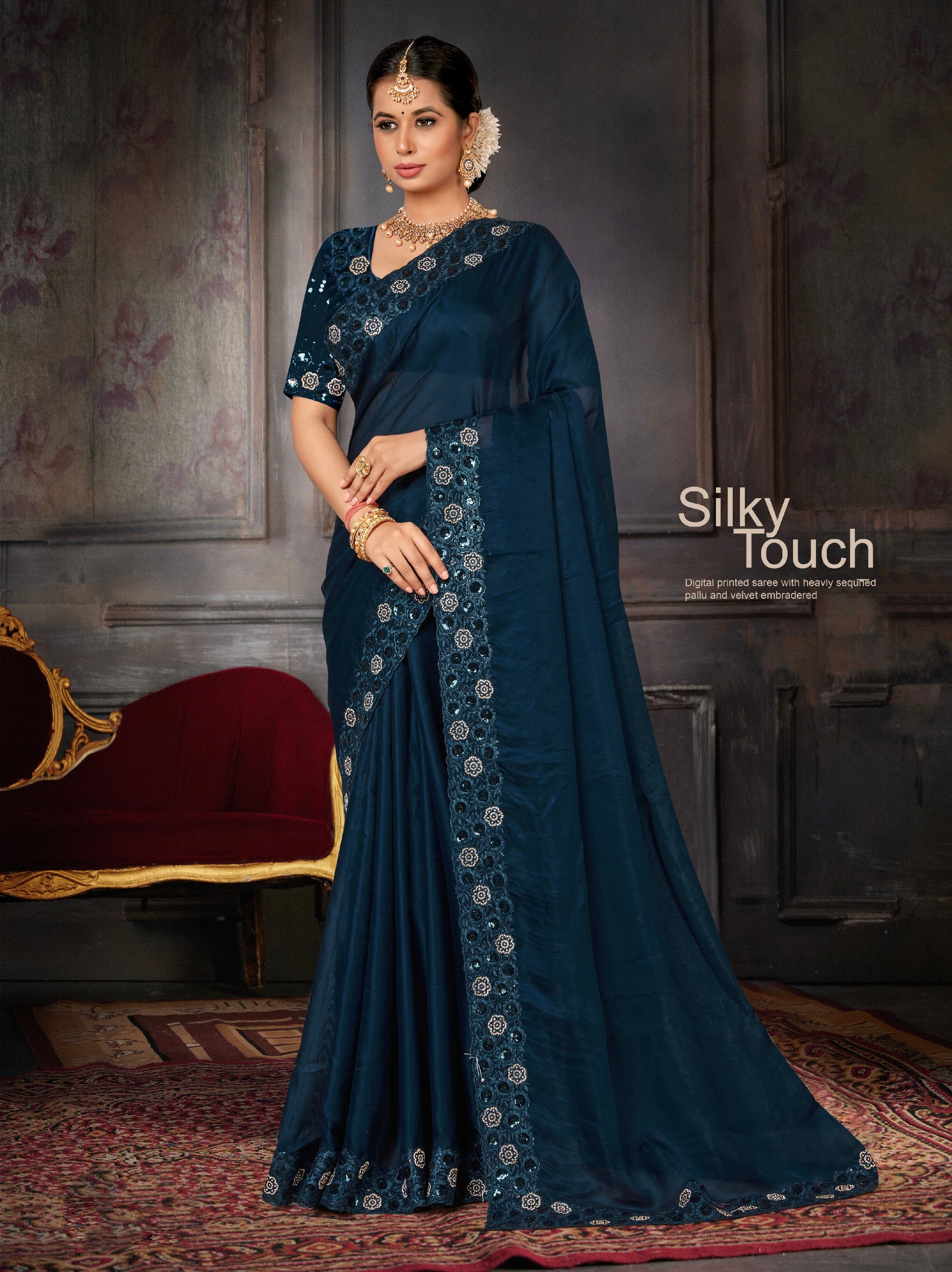 Beautiful Designer Party Wear Georgette With Heavy Sequins Embroidery Saree