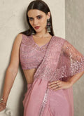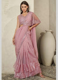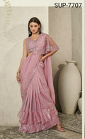 Beautiful Designer Party Wear Baby Pink Imported Satin Silk Saree