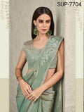 Beautiful Designer Party Wear Sky Imported Sartin Silk Saree