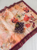 Blouse Fabric- Plain Linen with gold jari border with Digital print