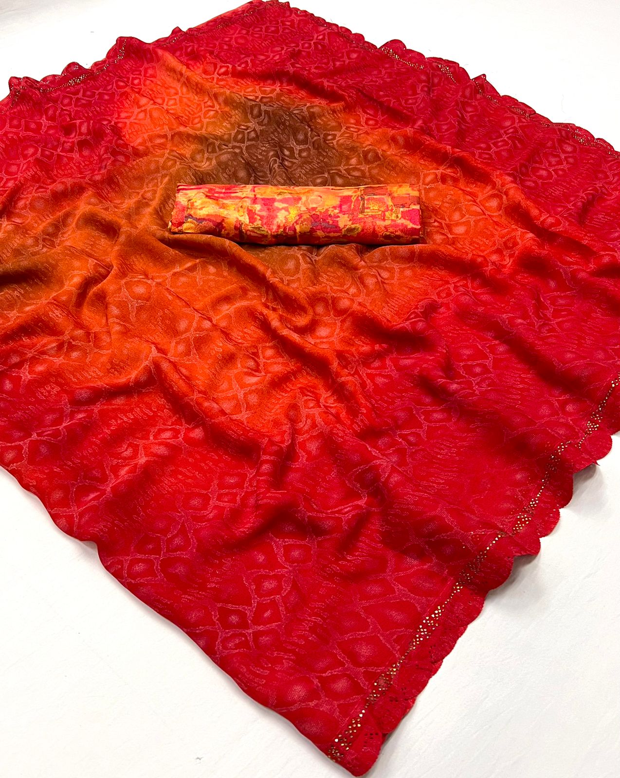 Beautiful Designer Party Wear Satvan Lemon Hand Print Saree