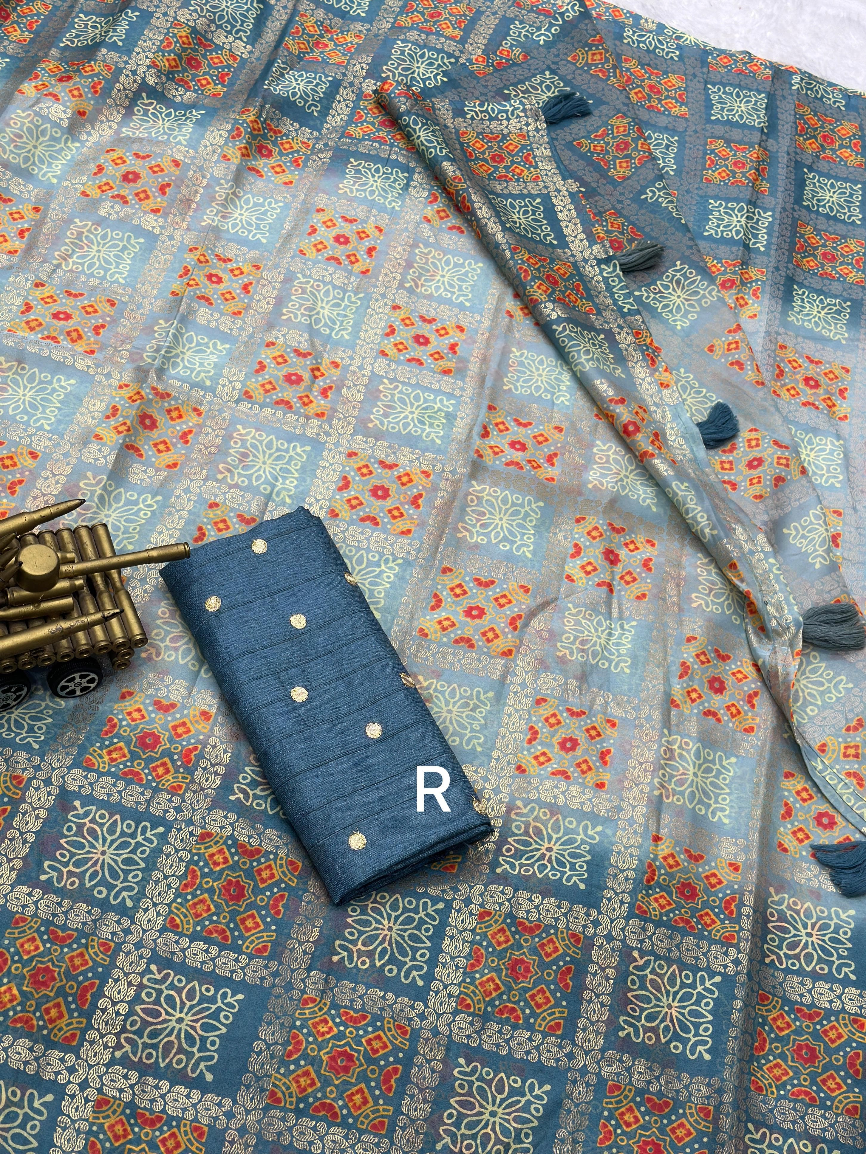 A perfect monsoon beauty with vibrant dusty colors and bandhej print, light weight saree