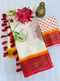 Blouse Fabric- Linen with gold jari 5×2 border with digital print