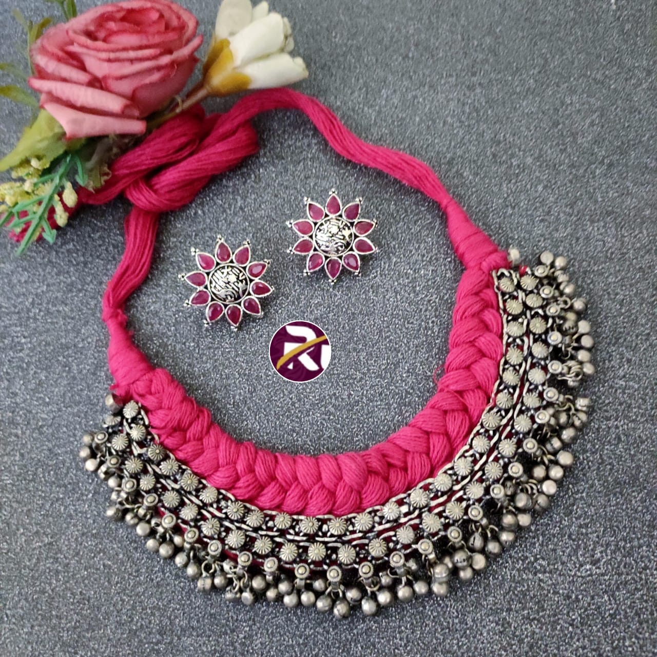 Beautiful Designer Premium Quality Ghungroo Thread Choker Set with Stone Earrings