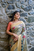 Premium Tussar silk saree with zari woven border and classic fabric pattern all over with traditional contrast weaving pallu and contrast blouse piece