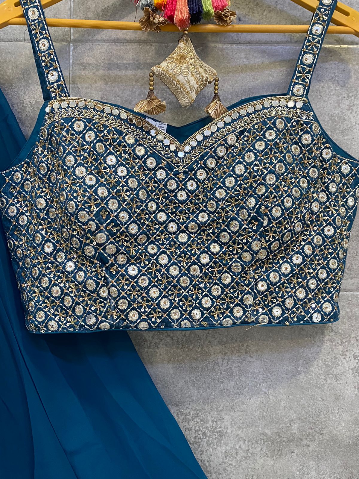• Beautiful Designer Pure Chiffon Crop Top Lehenga Choli