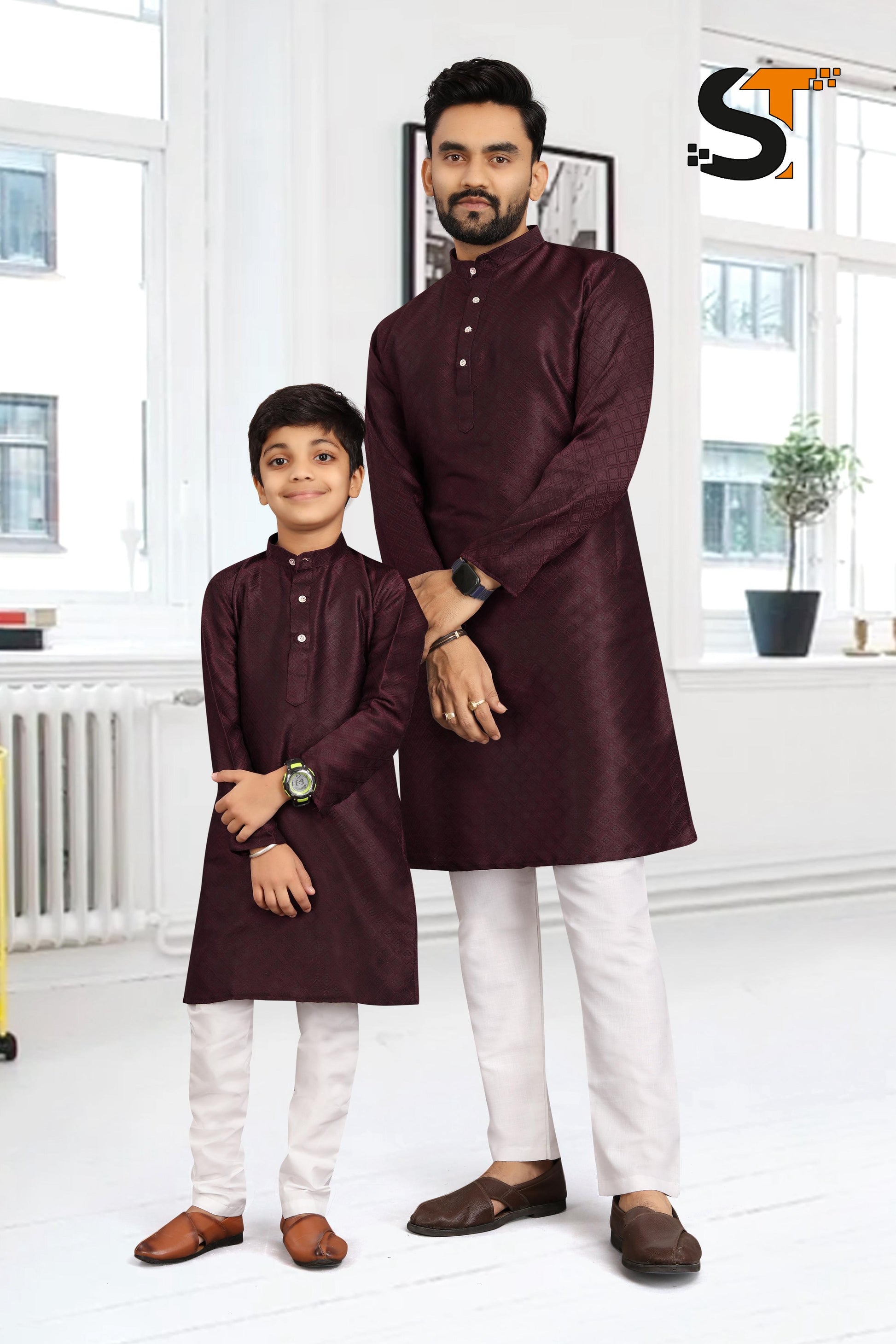 Beautiful Designer Pure Cotton Father Son Matching Combo Kurta Pyjama Set