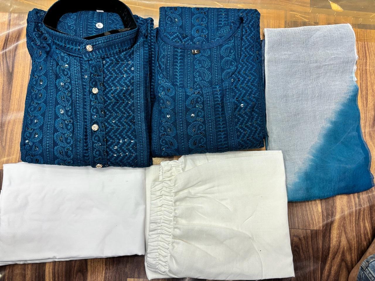 Beautiful Designer Pure Reyon With Sequenc Men's Women's Couple Combo Kurta Pyjama Set Beautiful Designer Pure Reyon With Sequenc Men's Women's Couple Combo Kurta Pyjama Set