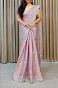SAREE : PURE SOFT ZIMMY CHOO SILK FABRIC ON BEAUTIFUL C-PALLU EMBROIDERY THREAD AND SEQUENCES WORK IN SAREE