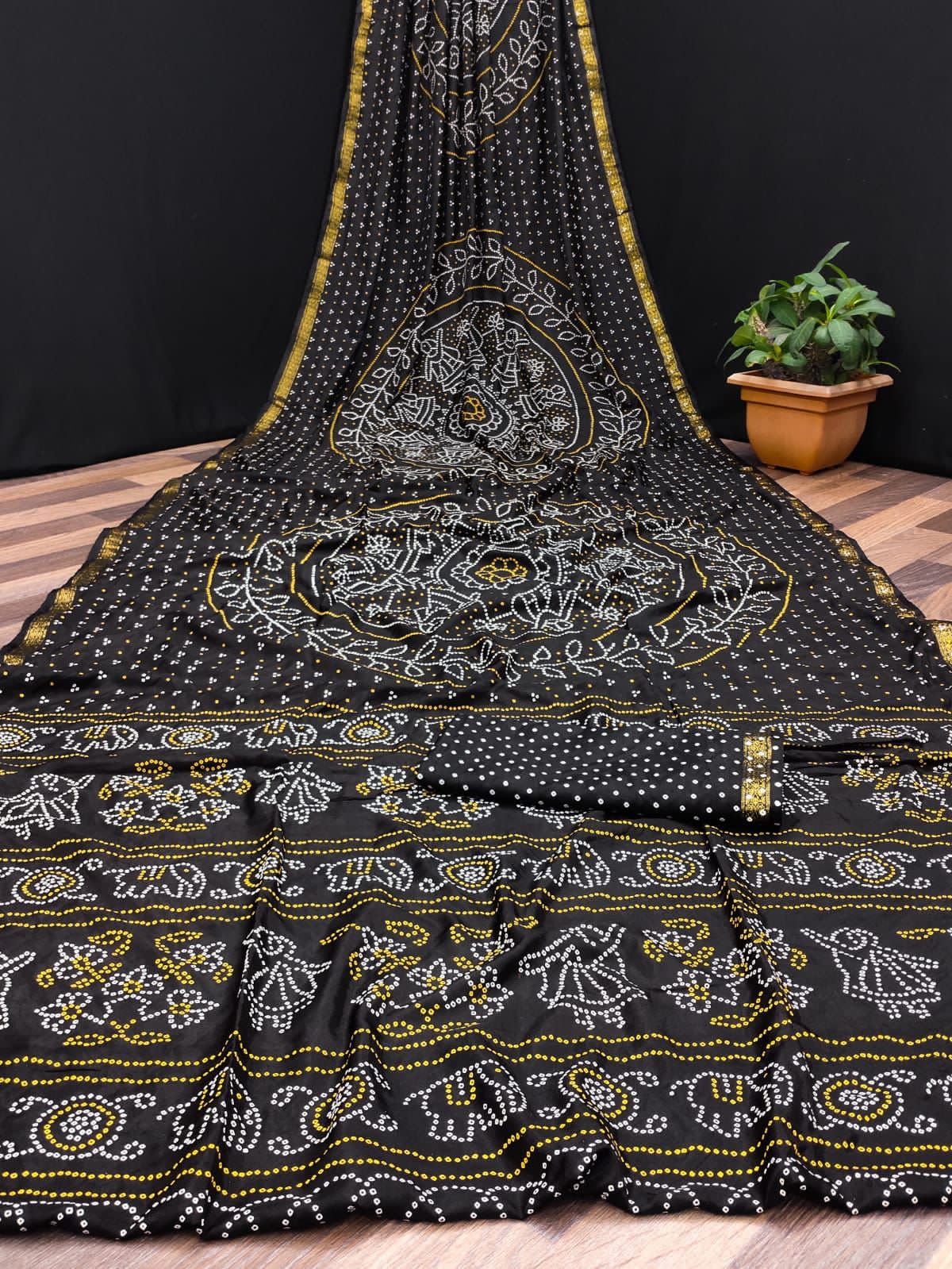 FABRIC :-PURE TAFETA SILK HENDI CRAFAEL BANDHEJ SAREE