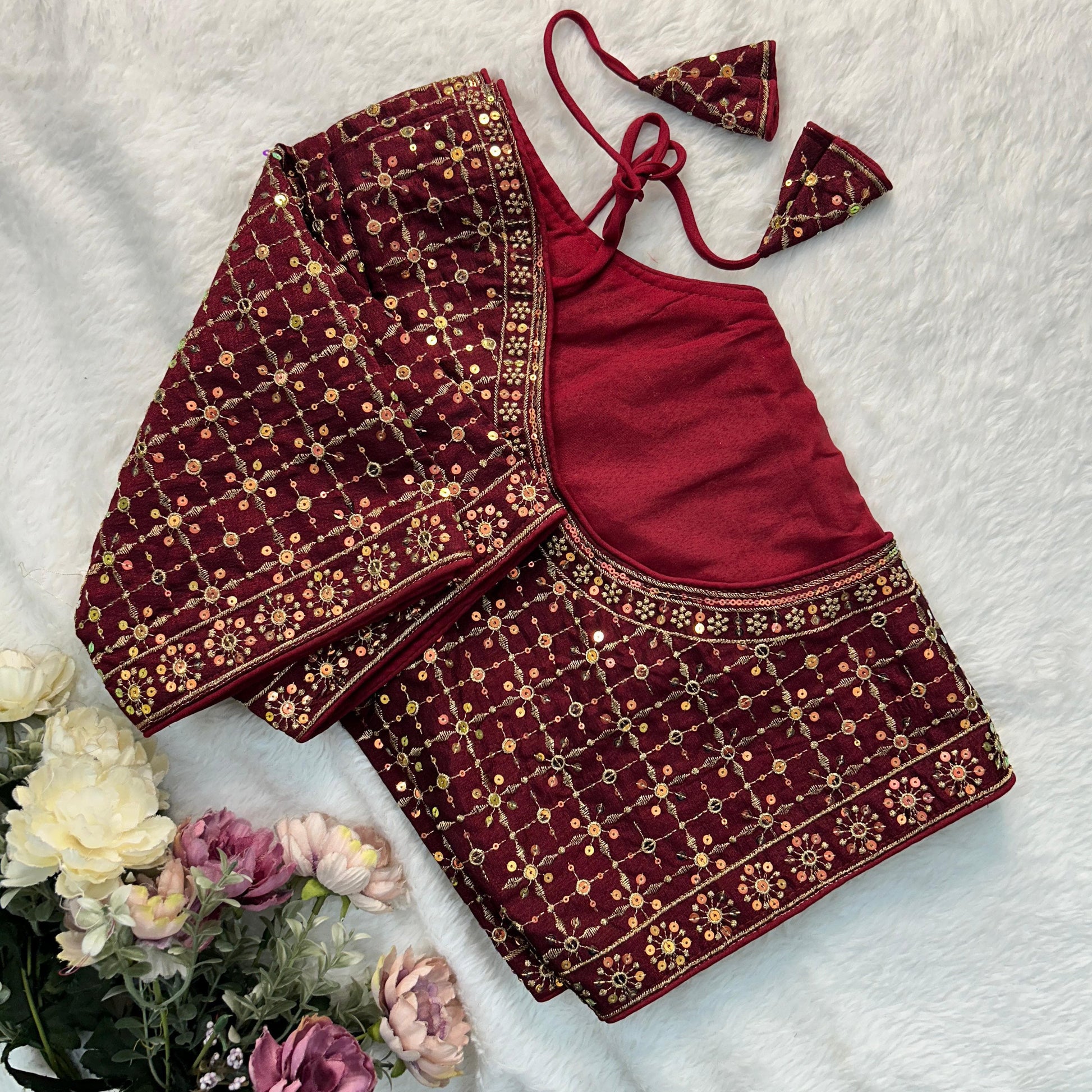Beautiful Designer Readymade Heavy Vichitra Silk Big Size Blouse