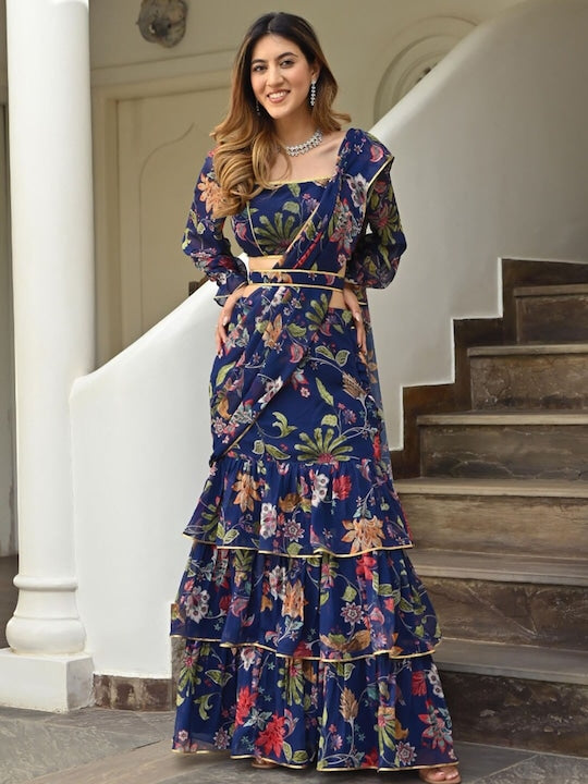 Beautiful Designer Ruffle Ready to Wear Saree saree