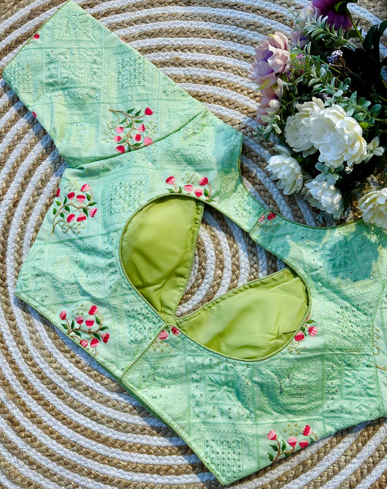 Beautiful sequence with tone to tone thread work all with colourful butties in blouse