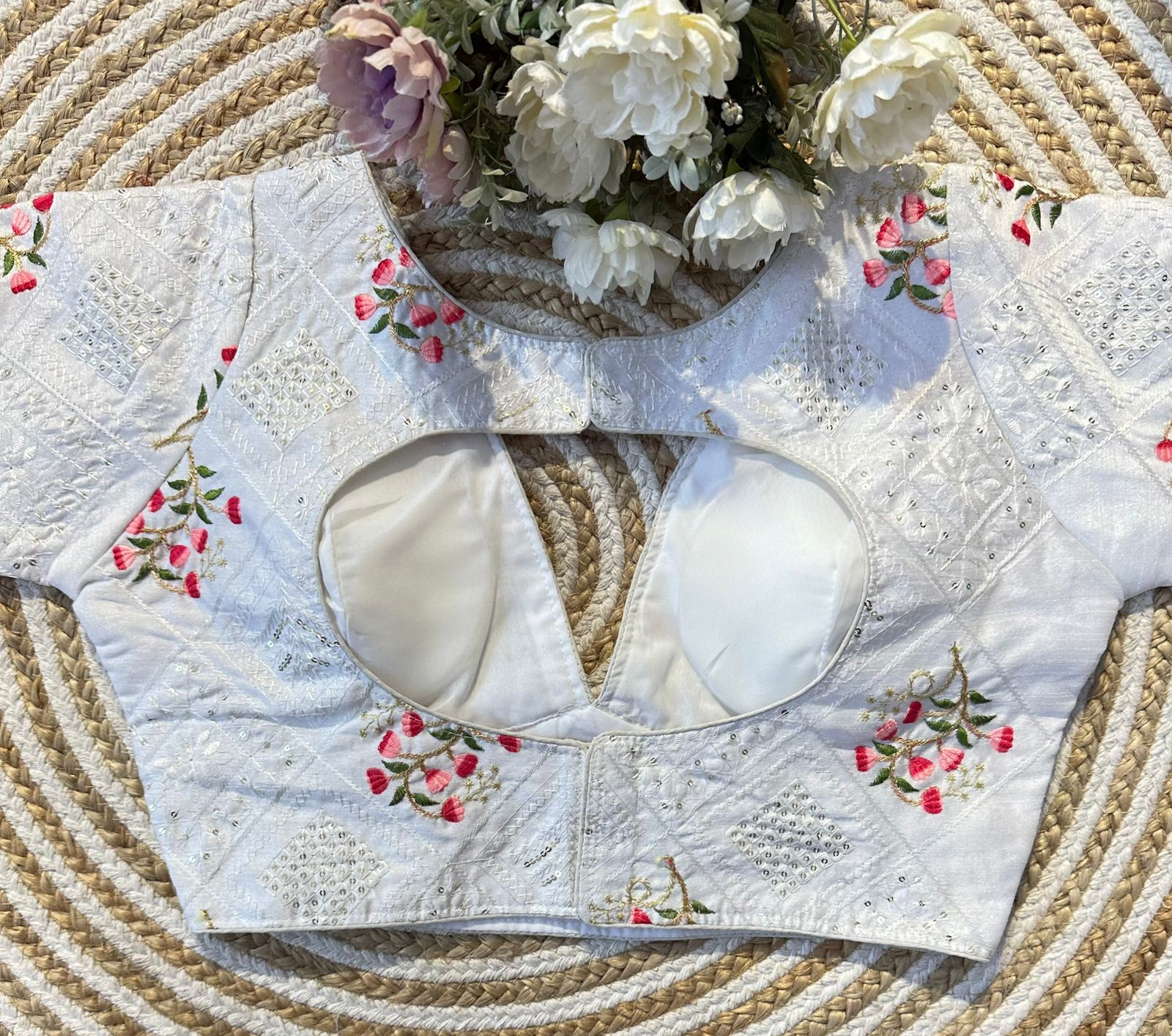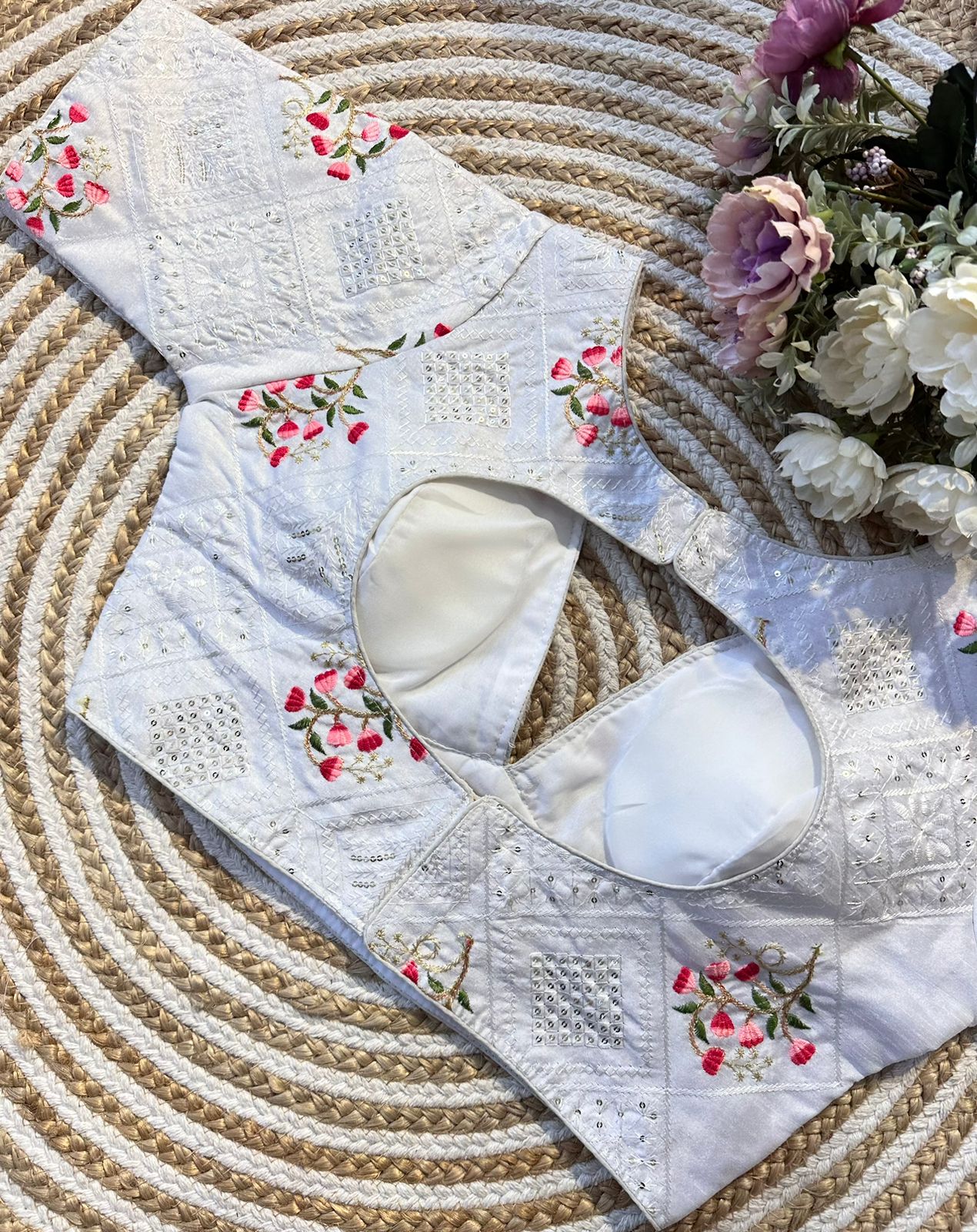 Beautiful sequence with tone to tone thread work all with colourful butties in blouse
