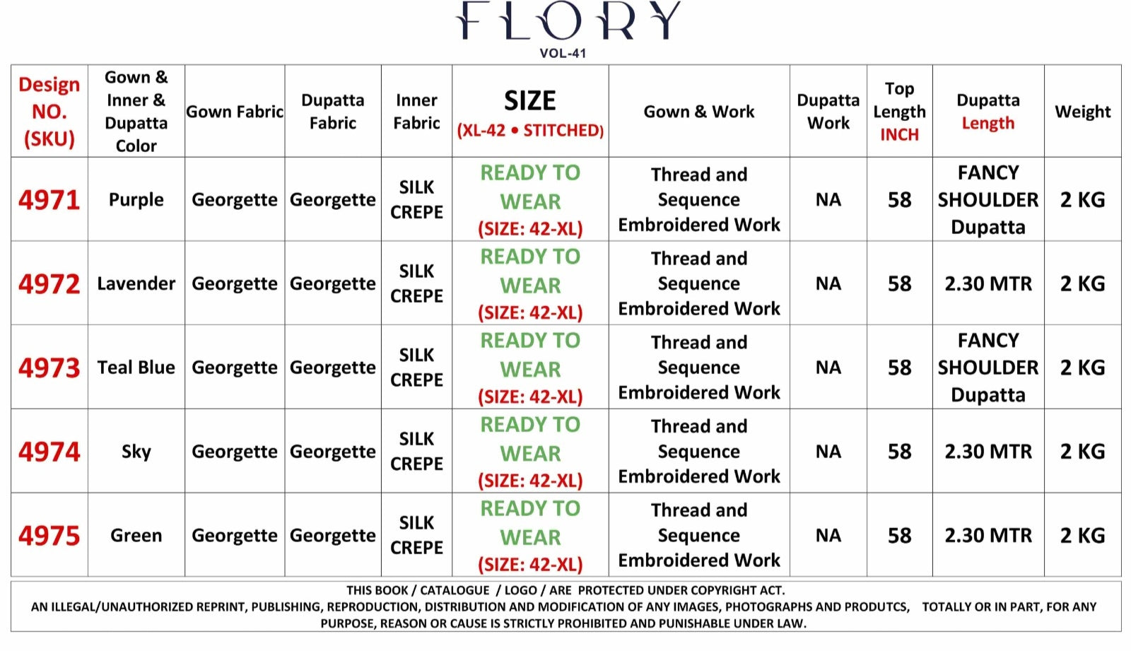 Beautiful Designer Shubhkala Georgette Gown Flory Vol 41 Designs 4974