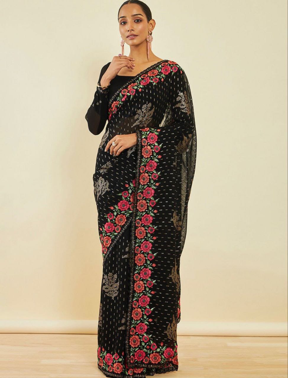 Classic and elegant, this saree will be a perfect addition to your ethnic wardrobe, offering a soothing and pretty wibe the adornment of seqwance work makes it impeccable