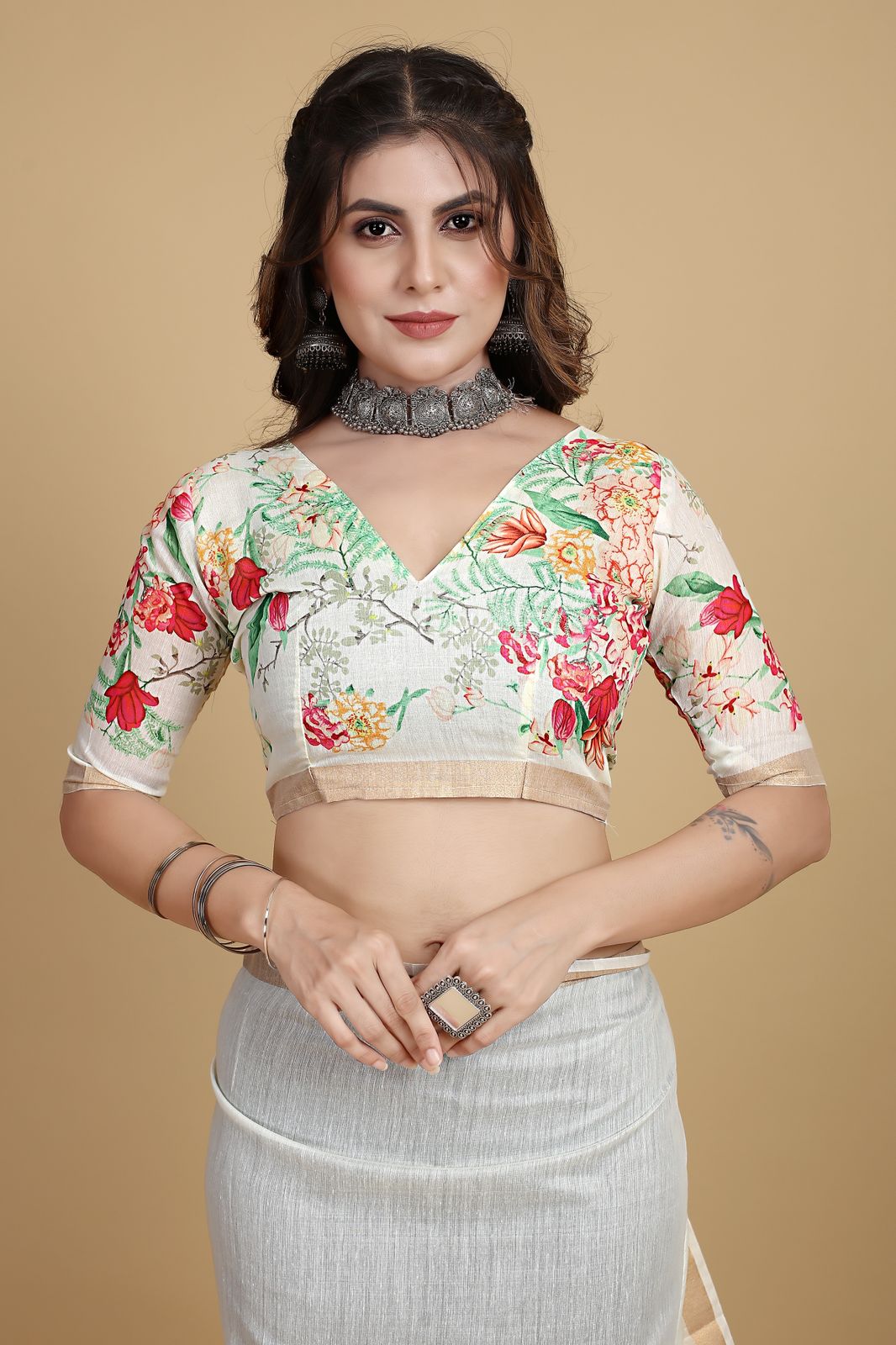 Beautiful Designer Soft Linen Cotton with Designer Floral Print Saree