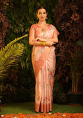 Soft Munga silk weaving saree with beautiful Digitalprint all over with zari woven border and pallu and fancy tassels with running blouse piece
