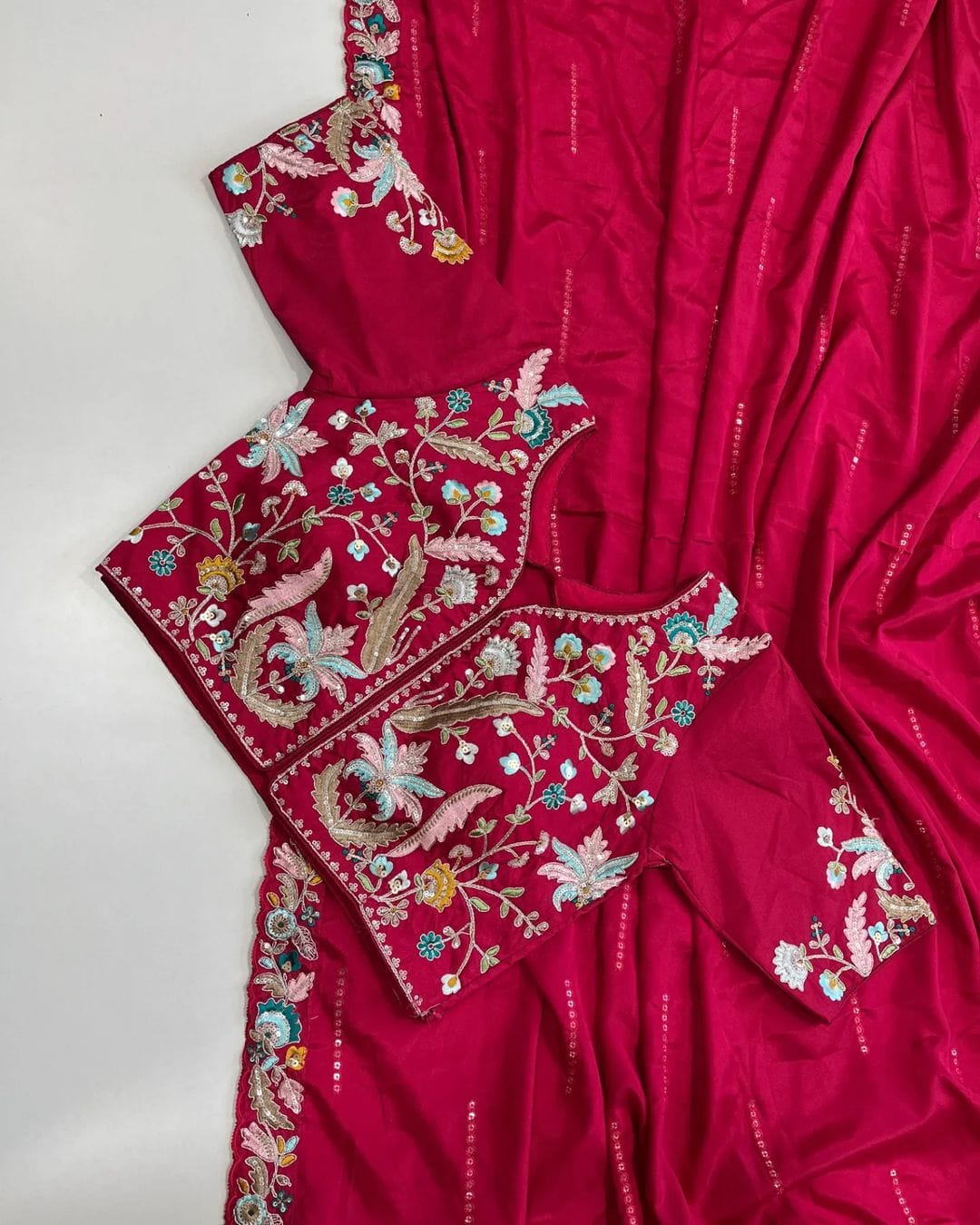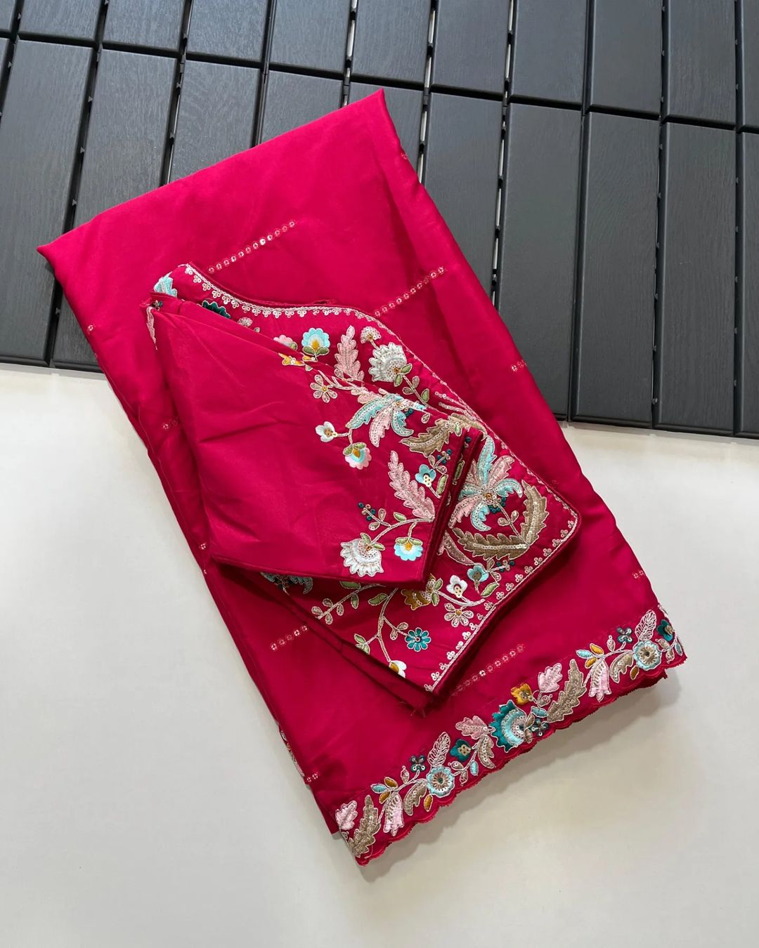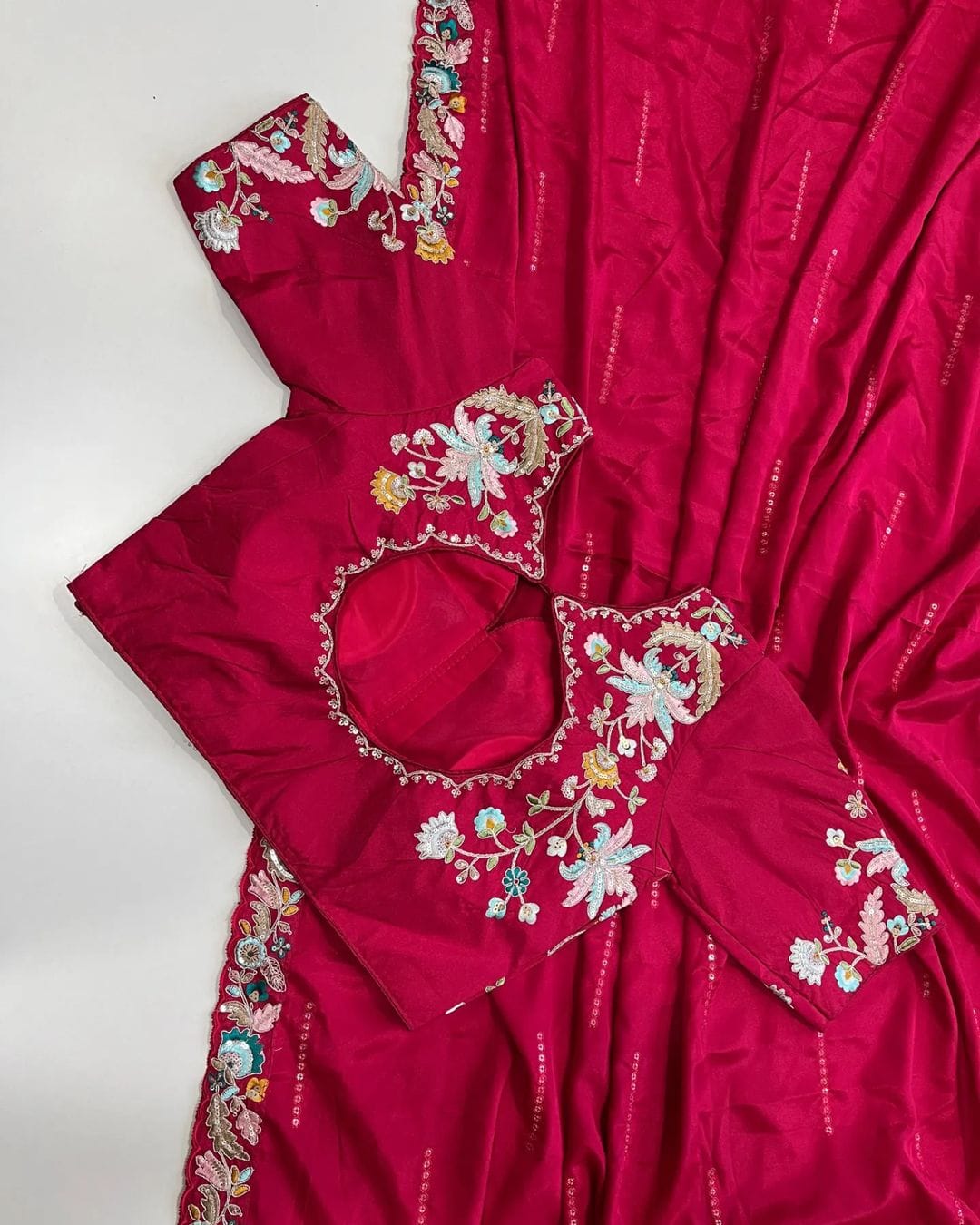 LAUNCHING A NEW TRENDING DESIGNER HEAVY EMBRODERY WORK WITH FULLY STICH BLOUSE SAREE