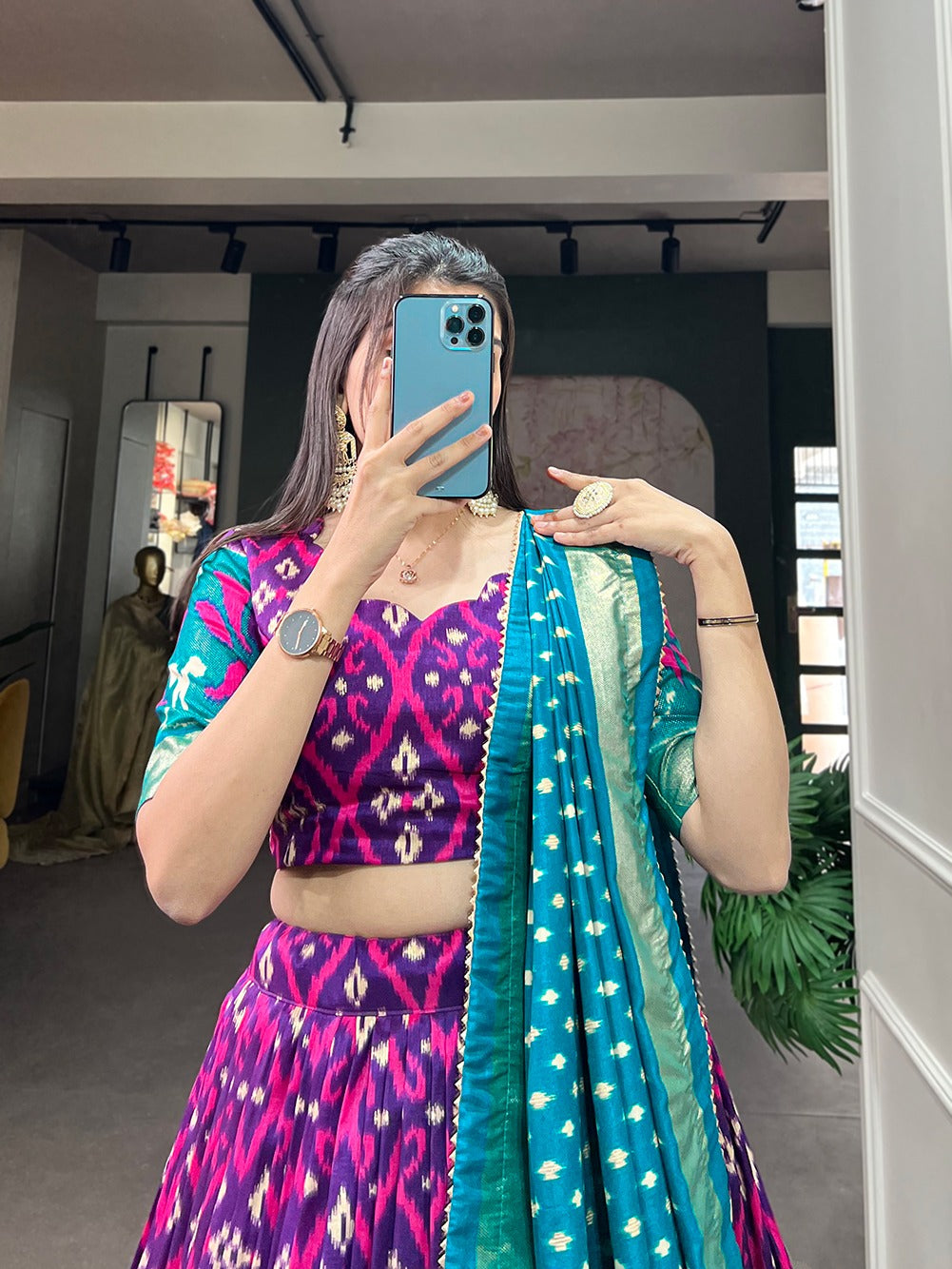 A exquisite dola Silk Lehenga Set with Perfect print design to make you feel utterly divine