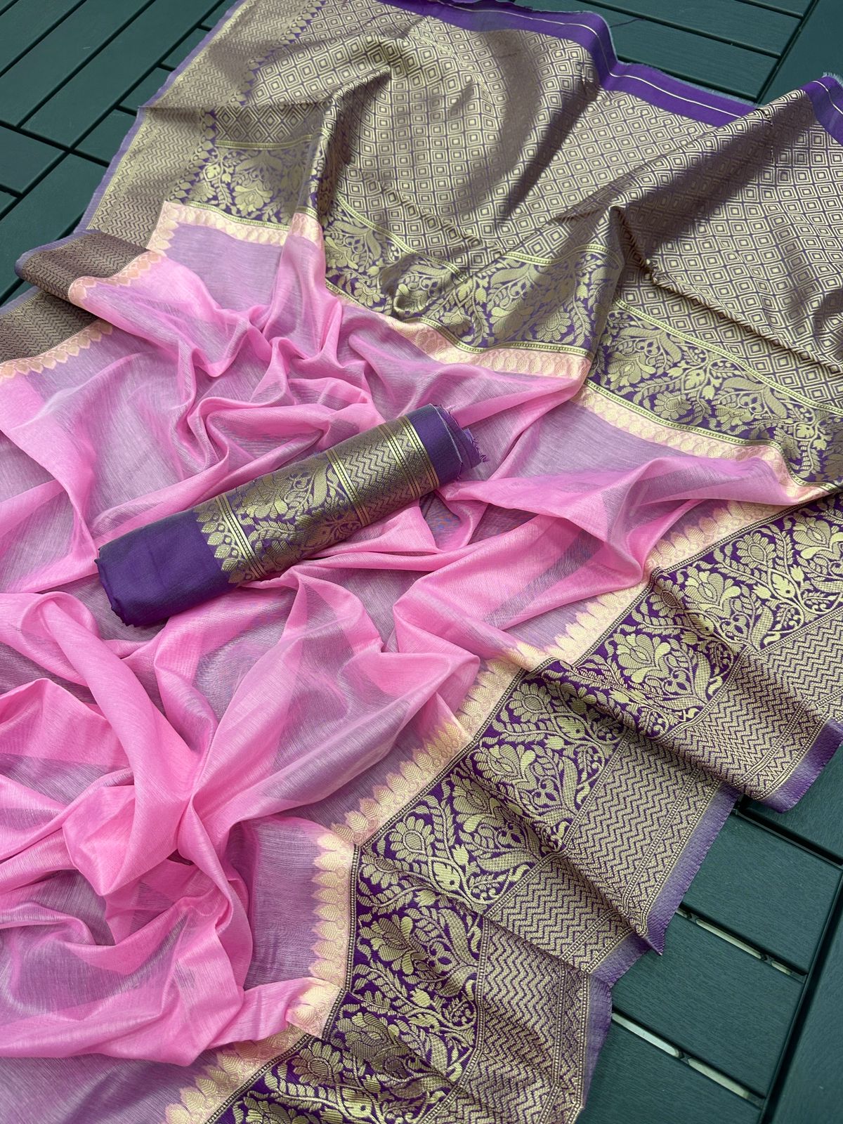 FABRIC:-LILAN WITH CONTRAST BORDER