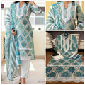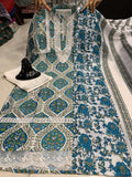 Featuring Beautiful Pakistani A-line Muslin Silk Suit which is has beautiful lace detailing and prints. It is very easy breezy and comfortable as it looks. It is paired with matching lace pants and Muslin Dupatta.