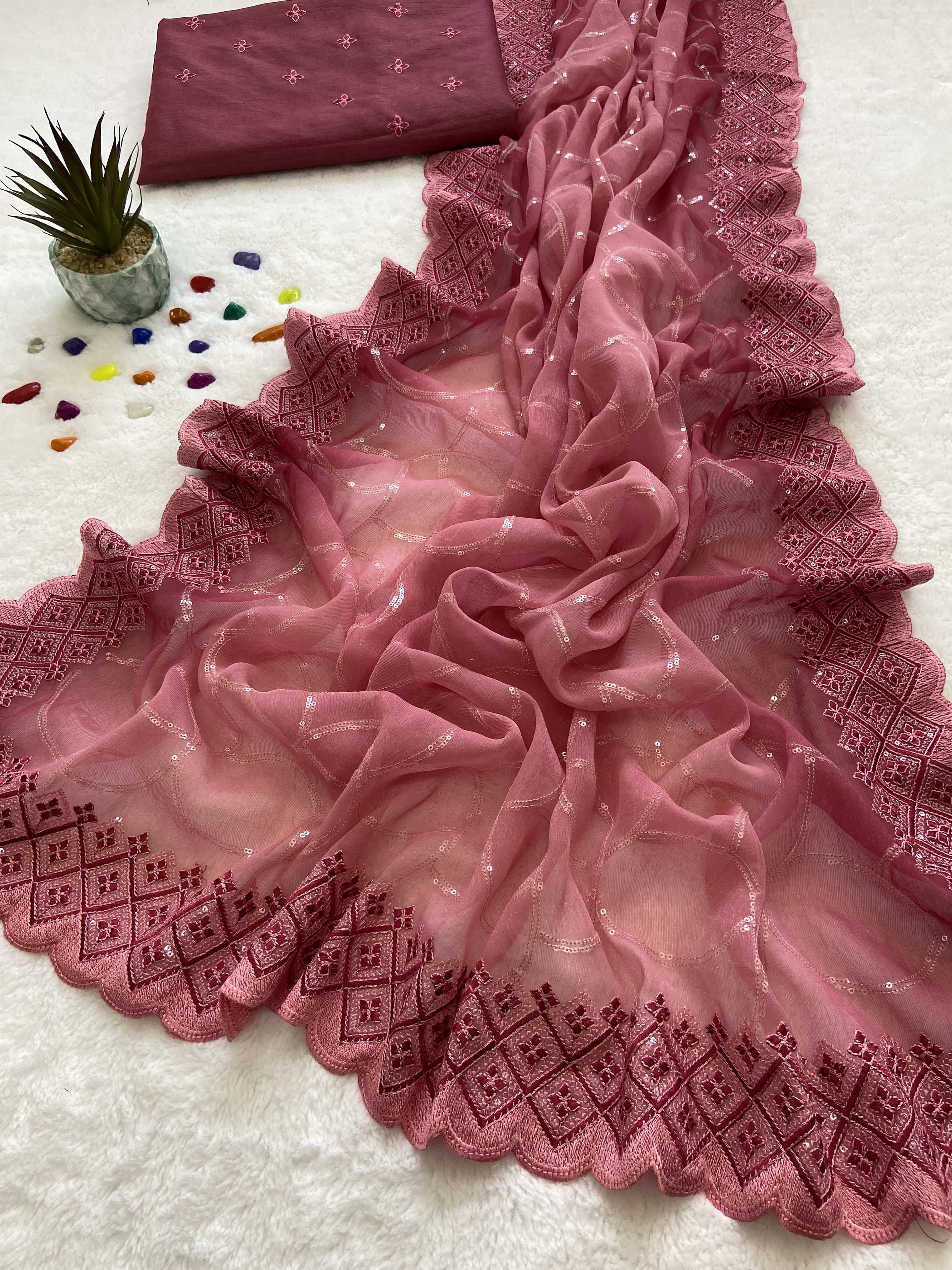 Beautiful Designer Summer Special Shimmer Sitara Pending Saree