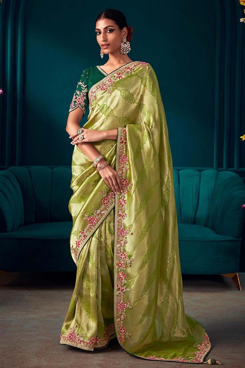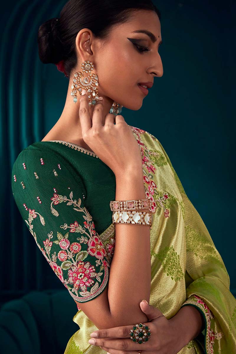 Beautiful Designer Pista Colour Banarasi Kanjivaram Saree
